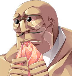 This mission is not available until Prince Ali Ibrahim Ashraf (I don't know the exact order of the names and will from here on call him Ali) arrives at his holiday destination: Germany. He is third in line to the throne, second in line being his uncle Majd (emphatically not to be confused with his aged servant Mahd), a narrow-eyed, pasty-faced caricature of an Arab who wants a possible rival out of the way. (Again, hats off to the voice actors: Majd speaks Japanese with what sounds like an Arabic accent, although real Arabs don't speak Japanese all that often, so what they would sound like if they did is anyone's guess.) Mahd worries about his reckless young charge and insists that he employ a bodyguard. Enter Kia. There are two options: use the name "Hardwich" to get an introduction, or just barge in. Barging in is the right option, because then Kia will amuse Ali by being insolent to Mahd and bring up the subject of sex, whether to brag or as payment in return for his services I don't know. The prince grins, and two things are obvious: i. these two like each other and ii. there's going to be some butting of heads in the bedroom.