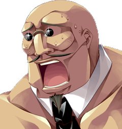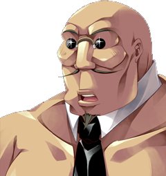 From the makers of Enzai, a new game which at first sight seems only slightly less dark and frightening: Zettai Fukuju Meirei, also translated into mangled pseudo-German, but I'll stick with the English translation: "absolute obedience". The main players seem to be a fighter pilot, a laid-back member of the Gestapo and a mutant Chippendale. The first two are hit men with a difference: their targets end up horizontal, but not dead. Their agency advertises: "Got a problem with certain people? Call us, and we'll bring 'em to their knees." Sound nasty? It isn't really.