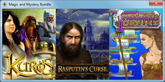 To tackle these games in backwards order: the third is a mission-driven sim, the second is a hidden objects game and the first is a puzzle game with hidden objects, like the Dream Chronicles series. They make a rather odd bundle, as Tradewinds Odyssey is funny, Rasputin's Curse is devoid of humour and Kuros takes place on the fictional planet of match-3 games Glyph and Glyph 2. The games have nothing in common, and one of them is even rather unpleasant. So I'll start with that one: Rasputin's Curse.