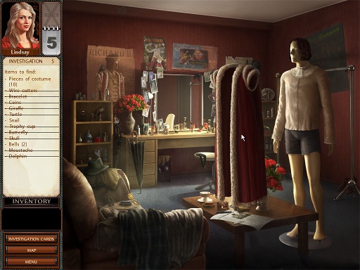 This wouldn't be the first game made by Russian gamemakers, but this time the subject matter is also Russian. Far from being as apologist as Midnight Mysteries: The Edgar Allan Poe Conspiracy (Poe wasn't mentally unstable, oh no, it was his enemies conspiring against him!) the game makes the historical figure into a greater monster than he reputedly was. This game is not child-safe: an American woman with Russian roots, urged by her husband to join him on a self-discovery trip to revive their fading marriage, comes home to find him in the shower with a racy blonde. Her young son has a mysterious health problem that the doctor promised to look into, and she has recurrent blackouts where her face creases up alarmingly as a dark figure inside her head calls her name. The infidelity was the last straw, and as she has already left her son with gran and gramps and made all the necessary preparations for a journey to Moscow, she leaves alone. At the hotel, the desk is unmanned and she really needs tea, so she breaks into the tea cabinet. Hidden object games have had me do a lot of picking locks and breaking into places, but this scene made me feel awkward. She keeps running into hints and snippets about Rasputin, so, to keep her mind off her emotional troubles, she researches him, and accidentally slips into the past to meet the man himself. He abuses her fear for her son's health, and... she escapes eventually, but as the only charm of the game is finding out the ending, I won't spoil it.