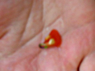 The tomato baby miracle. It's nothing unusual for a tomato seed to start sprouting inside a fruit. What is unusual is for someone eating that tomato on the train home, to spit out the seedling unharmed. And to take it home (in a dent made in a pack of butter, as I really had no other container to put it in) and lovingly plant it in a pot. And there the miracle ended, because the seedling, once grown to a respectable size, died from underwatering. (Sadly bad closeup quality, as Ididn't have the hang of closeups yet.)