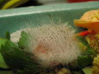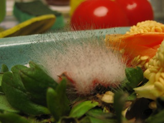 Kings of the kitchen, tomatoes can produce moulds that look good enough to be used as faux-fur trimming (although they might be a bit too fragile for that purpose, let alone the smell). The photographs do not do this mould's sheer fluffiness justice.