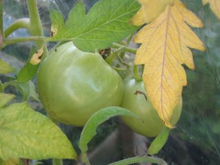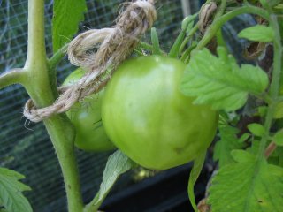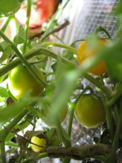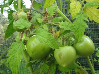 A last clutch of tomatoes; these had to be taken inside. Note the