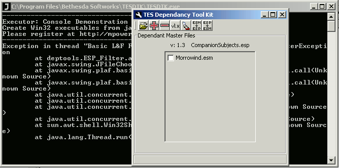 (The TES Dependency Toolkit or TESTDK has problems opening the C: drive to look for files on my laptop, so when opening a file on C:, I type in the filename plus drive and whole path. The buttons at the top transform one type of file to another.)