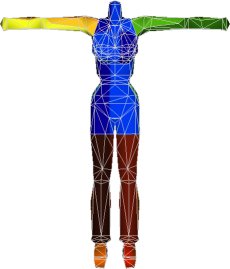 The first bust add-on was made from the W505FAFit Uber chest with added vertices. Its centre is slightly raised to avoid intersection with the also slightly raised central FAFit chest vertices. Its outer vertices were placed to blend with the upper and side vertices of the normal FAFit chest. Its texture map was shuffled around to match the texture map of the mesh alternately called nude/swimsuit (old Sims), S100FAFit (HDplus Sims) or B300FAFit (swimsuit skin pack). The texture itself was also edited a bit. Because the mesh has "-BODY" in its name and is connected with the body mesh through the CMX file, it uses the same texture as the body mesh.