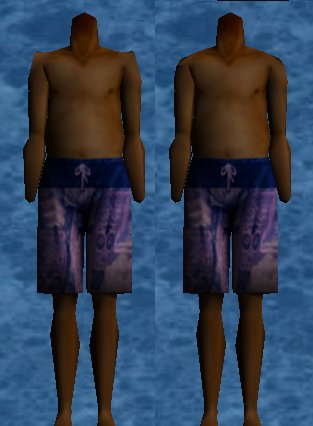 | bskswhd.zip | Replacements for HD skinny defaults and skinny male buyables: all swimsuits, and two lingerie meshes, one of which has had its chest vertices reassigned. | 30-08-2004 | These overwrite a number of standard Maxis buyable meshes. Make backups if you want to keep the originals. | One of the buyables, before and after. |