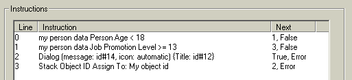 So, what would be the proper course of action: have line 0 jump to a question whether the child really should go to military school. Only, the question can't be inserted into the BHAV directly, so this BHAV must run a BHAV in another object, already decided to be the PedPortal, wait for that other BHAV to exit, and use the outcome to either set the grade to D+ or continue the military school processing. Better still, in case the PedPortal produces an error, first raise the grade to D+, then ask the question, then, if the answer is Yes, lower the grade again and continue.