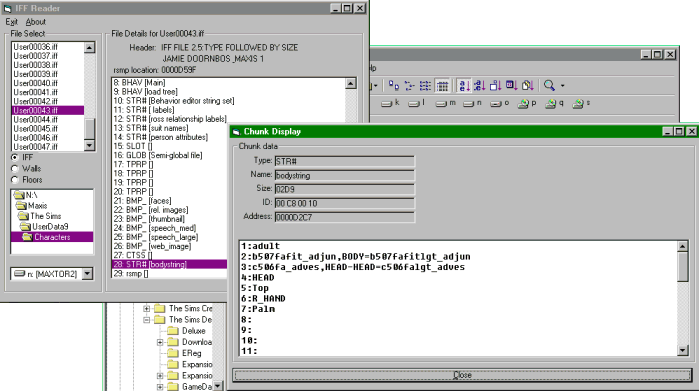 What is the "bodystring"? It is the part - string #200 in the STR# section, in case the editor doesn't label it properly - where the meshes and textures for a Sim are laid down; in accordance with the naming conventions, or else the game ignores them and picks something else. Insofar as they have to do with appearance, the bodystring also contains "skeleton" (adult/child mesh proportions), age, colour and gender.