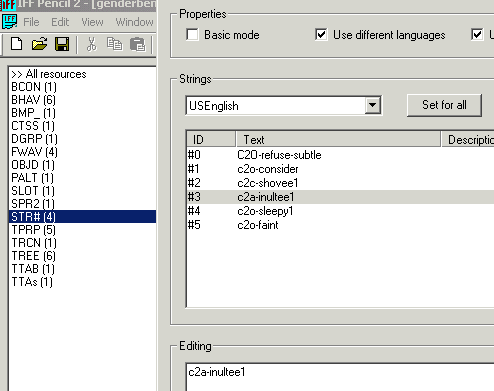 Each animation string is a name that can be edited. IFF Pencil even allows what Animation Alchemist won't: adding new ones. That's probably how the animations were added to GenderBender.IFF. Sadly, IFF Pencil does not have a spell checker! ^_^