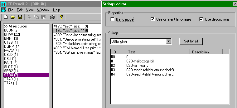 The highlighted line, and the rectangle with the two fields outlined in red, is what stops children being able to call cabs. The line says: "If the person calling is an adult, continue with line 8. Else abort." I can change that, of course, to "If the person calling is an adult, continue with line 8; if not, ditto." I simply enter an 8 in the second "go to" box, too. Provided the "Call Cab" option has been made available to children in the Unleashed version of "Phones.iff", cabs are now available for children. That is, to transport them to community lots. Once they're on a community lot, they can't call a cab to go back, because the only telephones available are payphones, and these are in a different IFF file: "PhonePayNeighborhood.iff". Open this IFF and make "Call Cab" available to children in the same way as in "Phones.iff", and they can also call a cab to take them home. (Note: "PayPhoneNeighborhood.iff" and "NeighborhoodPhonePlugin.iff" are from ExpansionPack5/ExpansionPack5.far, and that's the folder where they should be put. Don't put them in GameData/Objects, or they won't be loaded.)