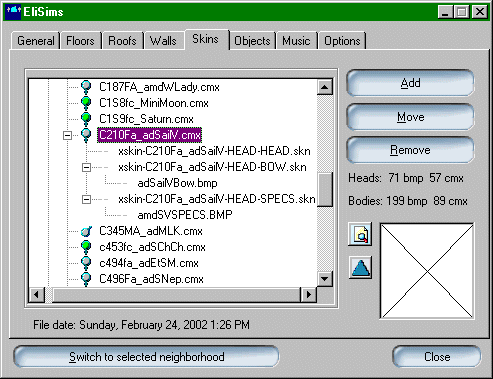 one skin to a mesh, that mesh will appear twice in the Create-A-Sim screen,